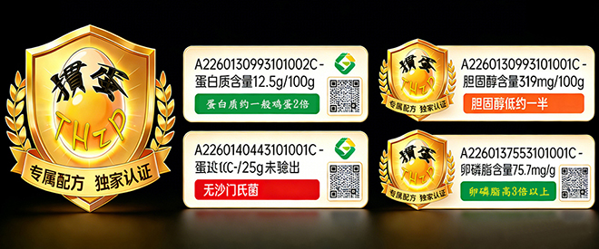 除实现卵磷脂含量较普通鸡蛋提升3倍以上的营养突破,且经SGS等多国国际质量检测单位认证,各项指标均达到国际先进水平。